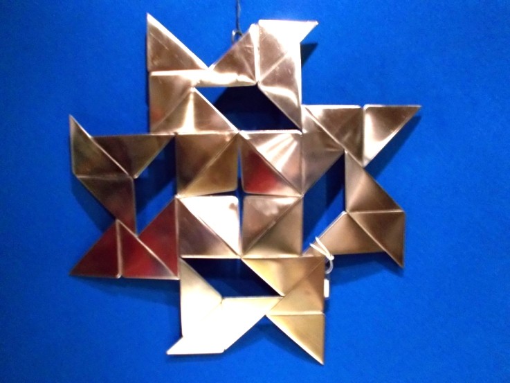 Ein aus kleinen Dreiecken zusammen geschweißtes Wandbild.